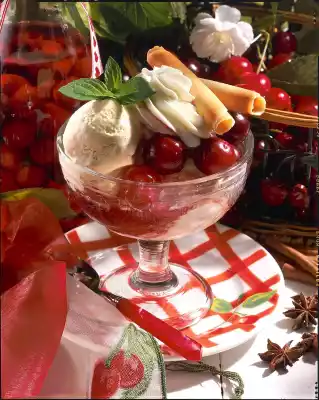 Semolina Foam With Almond Brittle And Raspberry Sauce