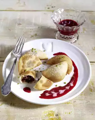 Stuffed Ravioli With Dried Fruits And Almonds With Raspberry Puree