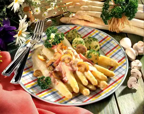 Roasted Asparagus With Grilled Feta And Rhubarb Chutney