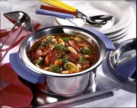 Paprika And Tomato Soup With Feta Cheese And Croutons