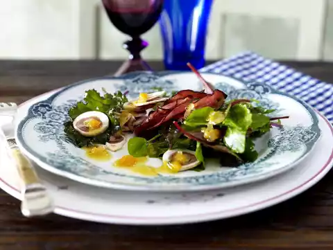 Fine Salad With Crispy Ham And Sweet Potato Vinaigrette