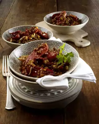 Lentil Vegetables With Fried Cabanossi