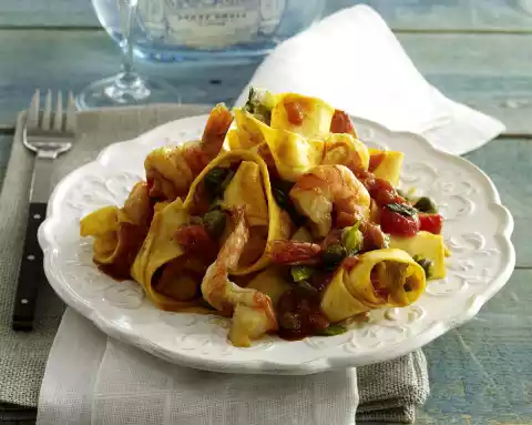 Ribbon Noodles With Prawns In Spicy Tomato-capersauce (Quick Menu)