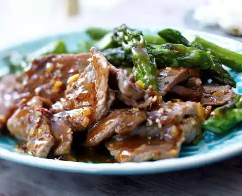 Fillet Of Beef In Sichuan Pepper Sauce With Green Asparagus