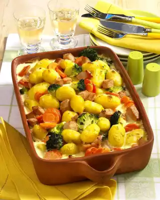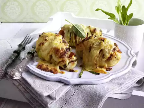 Duck-apricot Roulade With Potato And Cheese Gratin