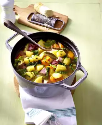 Potato And Savoy Cabbage Stew With Smoked Pork And Horseradish