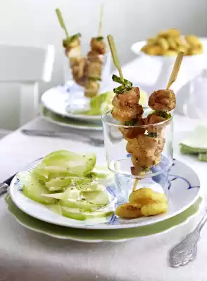 Chicken Skewers With Kohlrabi In Pesto Cream