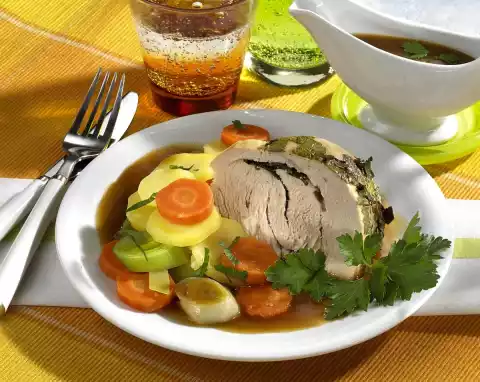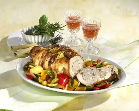 Onion And Turkey Rolls With Buttered Vegetables