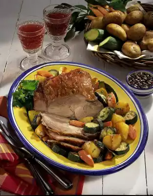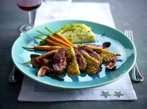 Duck Breast In Fig-cassis Sauce With Potato And Nut Roast, Pointed Cabbage And Carrots (low Temperature Method)