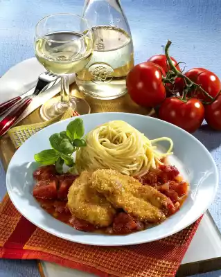 Turkey Schnitzel Au Gratin With Cheese Dip