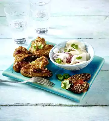 Chicken Wings With Sesame Asia Sauce And Radish Salad