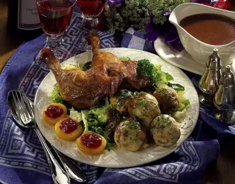 Dumplings With Duck Legs And Savoy Cabbage