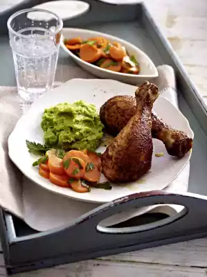 Marinated Chicken Legs On Pea Puree With Parsley-carrots