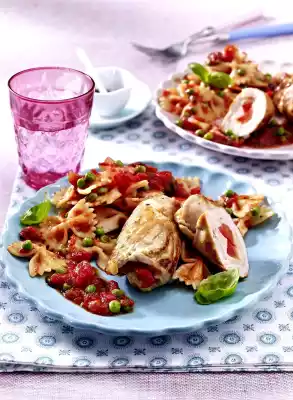 Turkey Rolls With Tomato-pea Sauce And Farfalle