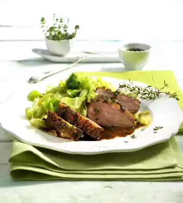Baked White Cabbage Slices With Duck Breast