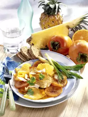 Roasted Exotic Fruits With Turkey Steak