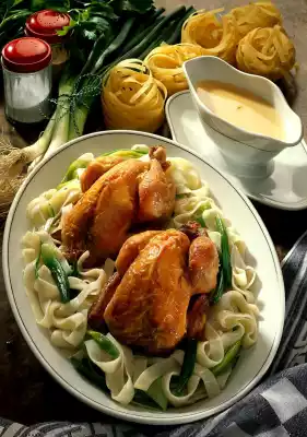 Spring Chicken On A Bed Of Noodles