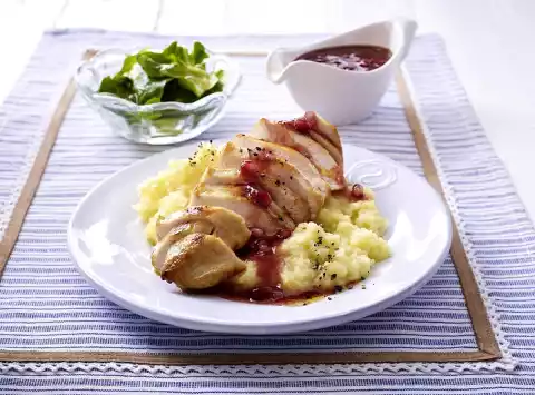 Chicken Filet With Pomegranate Sauce And Parsnip Purée