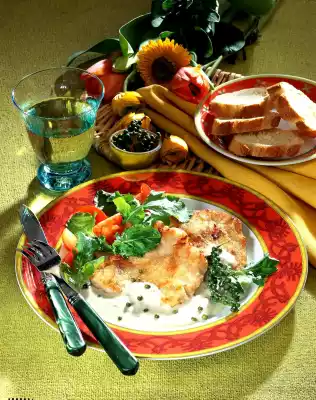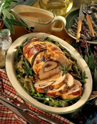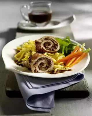 Turkey Rolls With Herb Spaetzle On Plum-red Wine Sauce