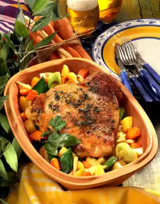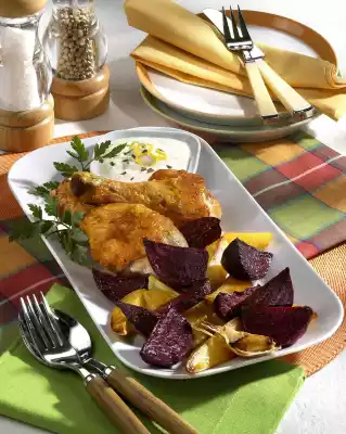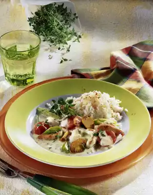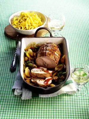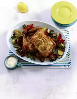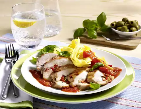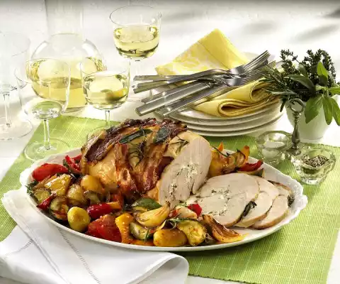 Roast Turkey With Herb Cream Cheese Filling, Served With Paprika And Zucchini Vegetables