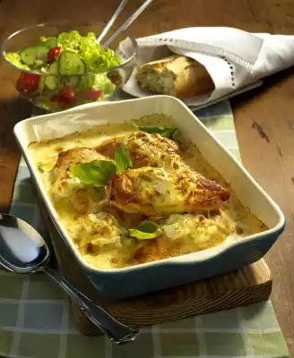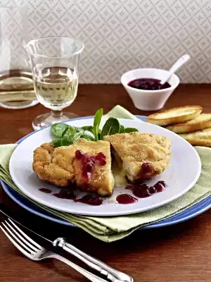 Turkey Cordon Bleu With Camembert And Pear And Cranberry Sauce