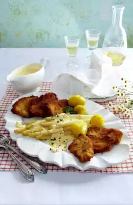 Blitz-Hollandaise With White Asparagus And Two Kinds Of Filet Schnitzel