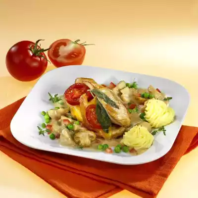 Chicken Cordon Bleu With Peas, Mushrooms And Mashed Potatoes