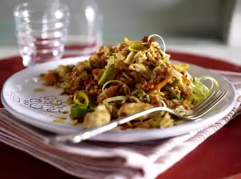 Fried Rice With Egg And Turkey Strips