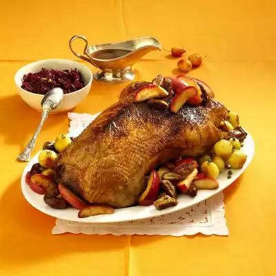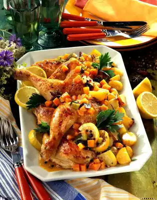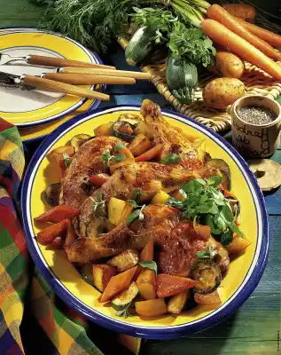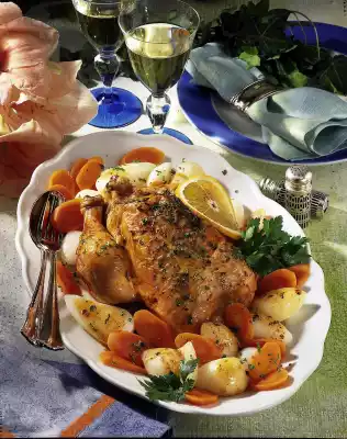 Turkey Drumstick And Winter Vegetables In A Bed Of Salt