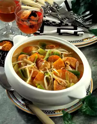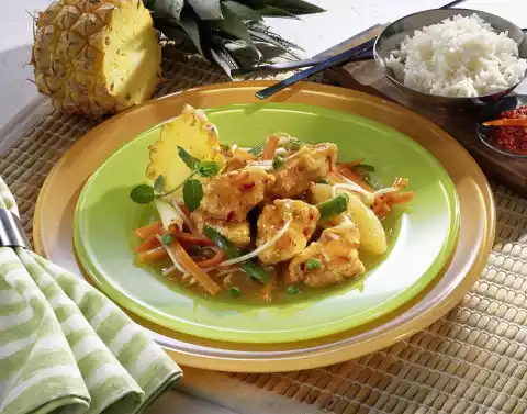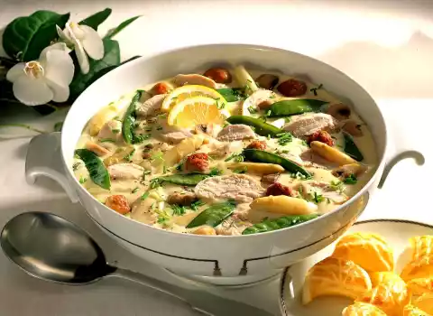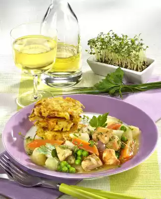 Turkey Goulash With Carrots, Kohlrabi, Peas And Herb Sauce With Rösti