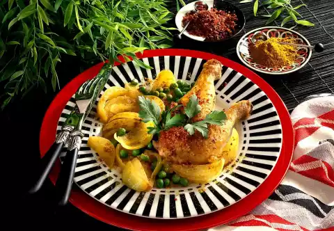 Glazed Chicken Breast On Pea-shallots-vegetables