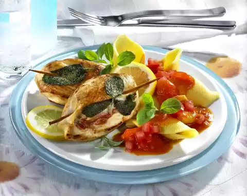 Sage Chicken Legs On Lentil-tomato Sauce With Ribbon Noodle