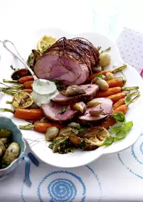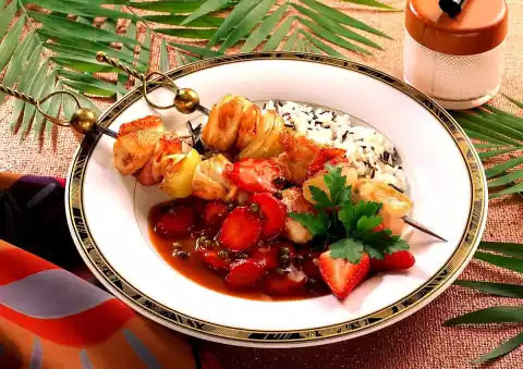 Turkey Breast With Stuffed Pineapple Slices And Leek
