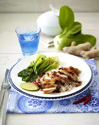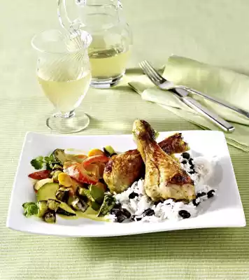 Jerk Chicken, Rice And Peas And Veggie Curry