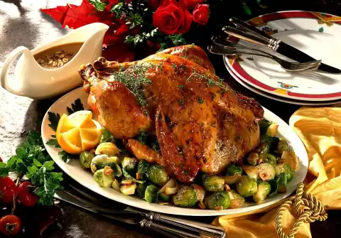 Stuffed Turkey With Brussels Sprouts Vegetables