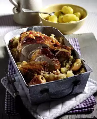 Stuffed Goose With Savoy Cabbage Slices And Porcini Mushroom Sauce