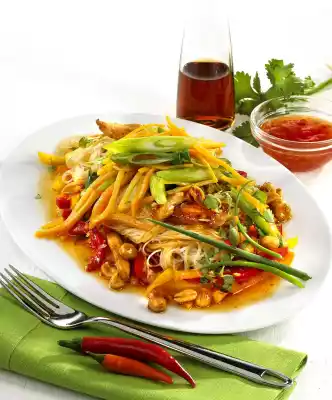 Chicken Nuggets In Coconut Breading With Spicy Cucumber Salad
