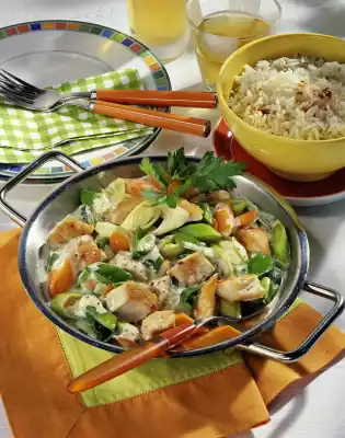 Poultry Pan With Carrots And Leek In Mustard Cream Sauce