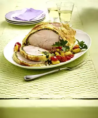 Holiday Turkey With Bacon Rose Cabbage And Apricot Dumplings