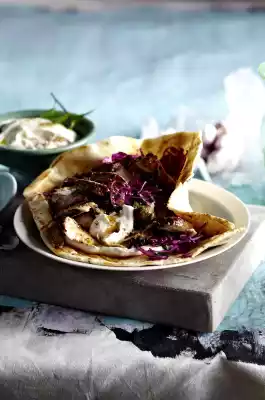 Arabic Shawarma With Tahini And Red Cabbage Salad