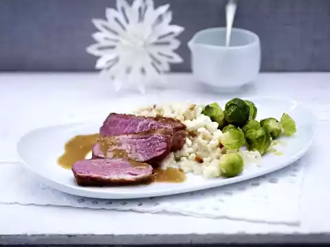 Duck Breast With Pine Nut Risotto And Quince Cider Sauce