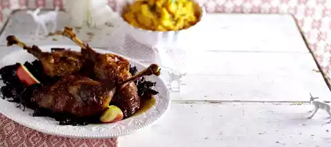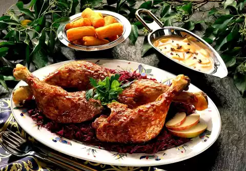 Goose Legs With Apple Red Cabbage And Sweet Potato