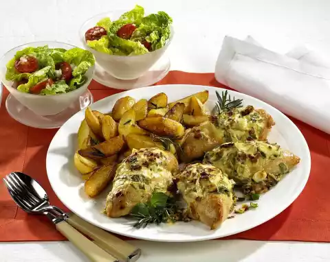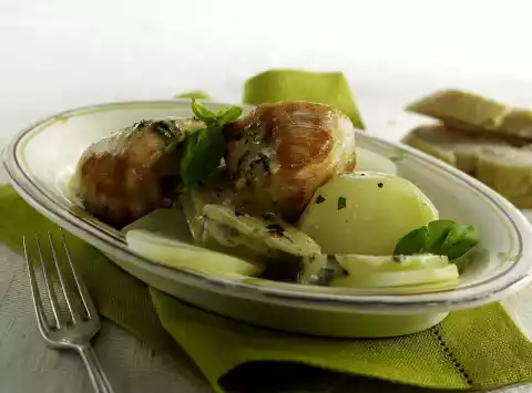 Chicken Medallions In Basil-bressosauce With Kohlrabi