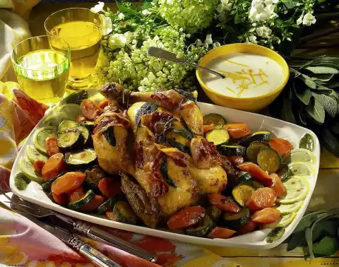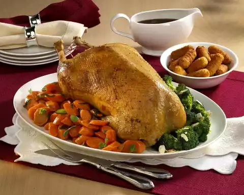 Roast Goose With Carrots, Zucchini And Croquettes