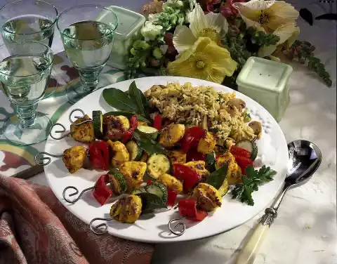 Poulade Skewers In Peanut Spread With Soya-honey Sauce