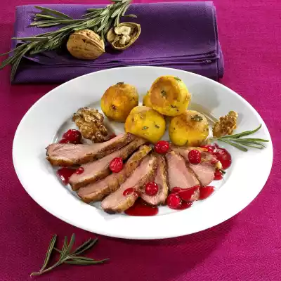 Duck Breast With Walnut Dumplings And Cranberry Sauce