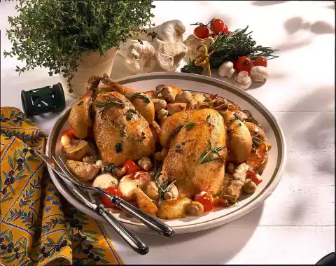 Chicken Legs On Savoy Cabbage-potato Puree And Honey-mustard Sauce