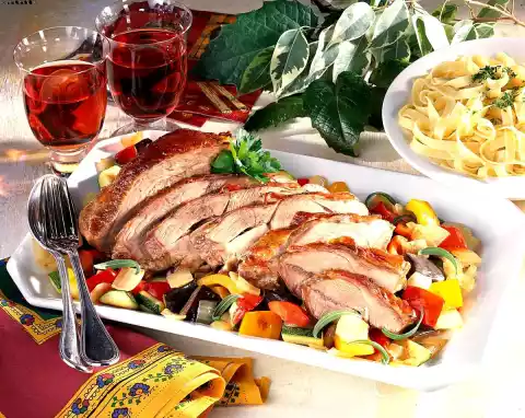 Duck Breast With Orange-cinnamon Sauce, Red Cabbage And Dumplings