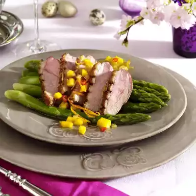 Green Asparagus With Mango Salsa And Duck Breast
