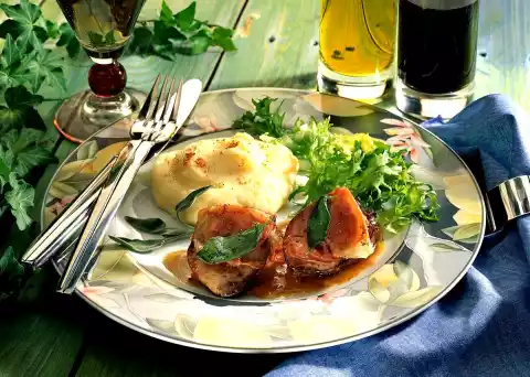 Liver Saltimbocca With Mashed Potatoes And Green Salad